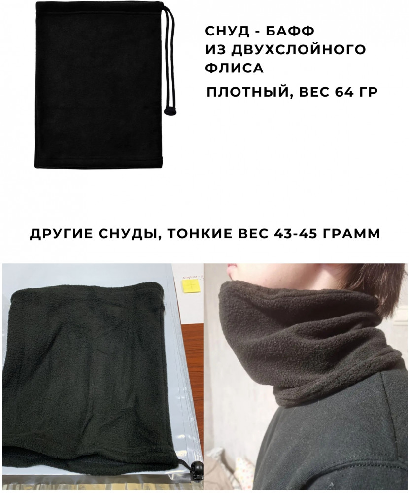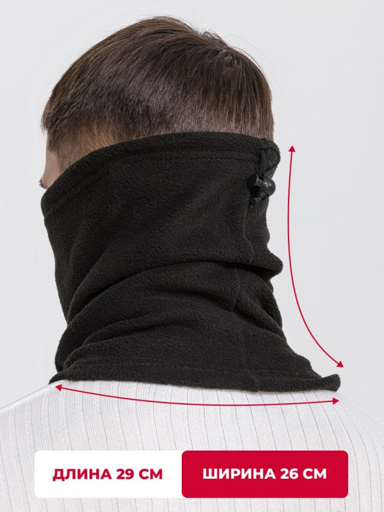 Снуд-бафф может использоваться как маска, что делает его особенно удобным в ветреную и морозную погоду. Двухслойный флис обеспечивает отличные теплоизоляционные свойства, сохраняя комфорт даже в самых суровых условиях.