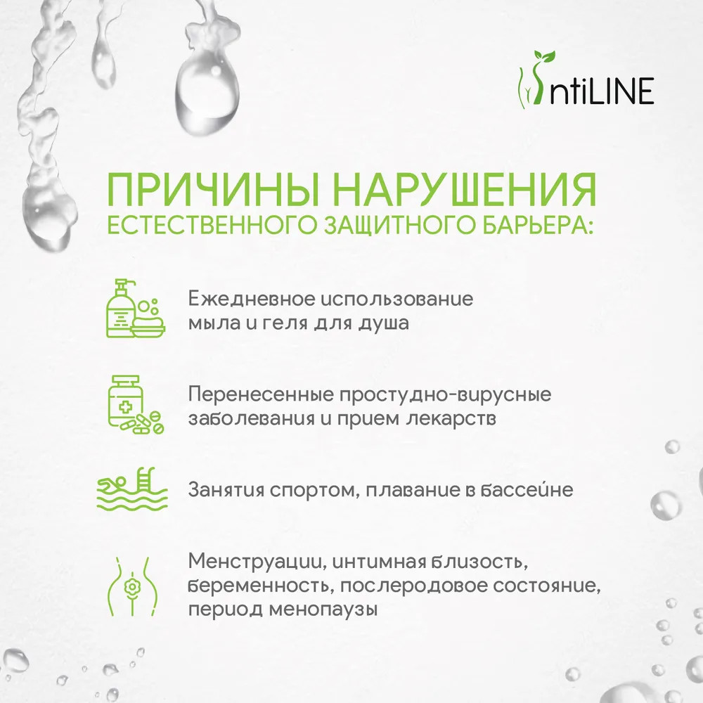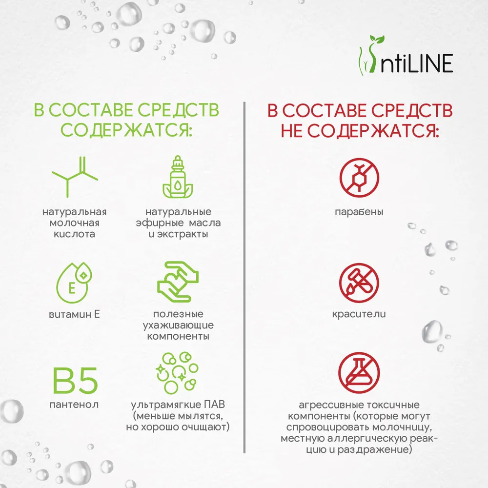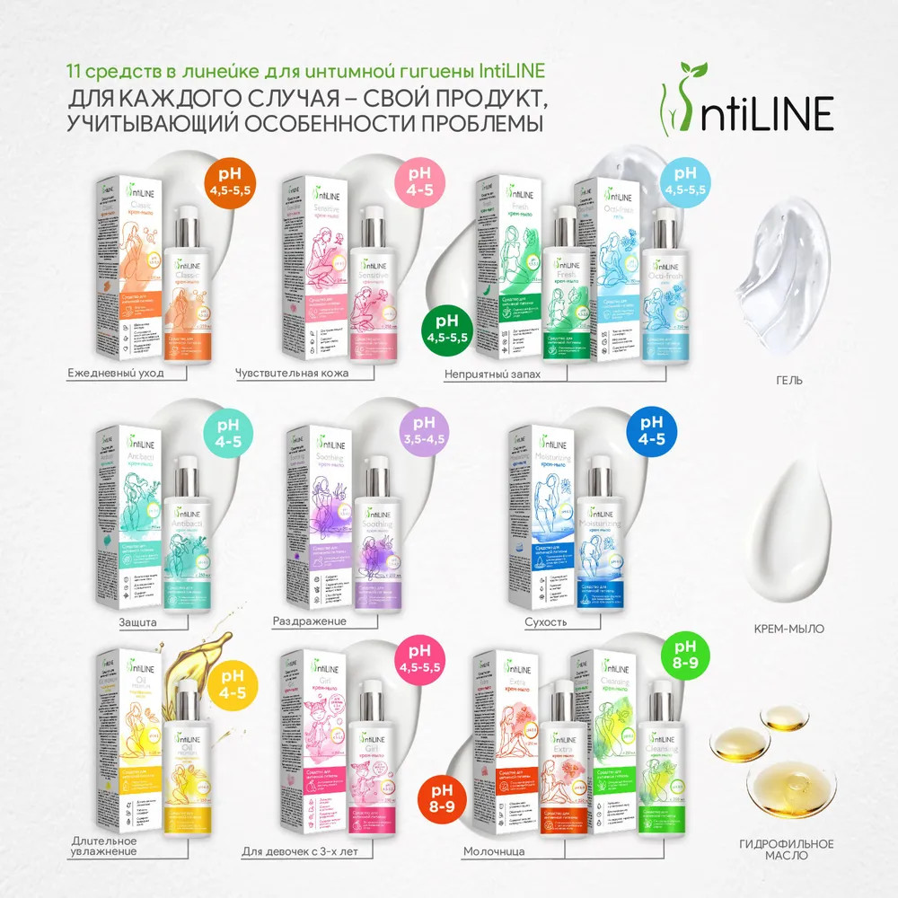 | Интимная зона — самая нежная женская зона со своей средой, в которой значительную роль играют лактобактерии. Серия безопасных средств IntiLINE создавалась для заботы о деликатной коже интимной зоны на основе натуральной молочной кислоты. Воздействие этого вещества дополняется и усиливается био и ухаживающими компонентами для направленного воздействия на интимные проблемы. Средства для интимной гигиены IntiLINE разработаны с учетом всех особенностей и проблем, существующих у женщин. |