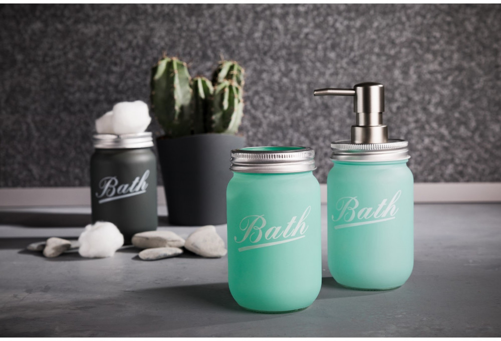 Дозатор «Retro» для жидкого мыла, из матового стекла цвета антрацит. Дизайн в стиле — банки, с крышкой из окрашенного металла не глянцевого серебристого цвета, помпа из сатинированного хромированного пластика. Изготовлен из высококачественного матового стекла цвета антрацит с надписью «Bath» белого цвета. Помпа хромированная, сатинированный пластик. Дозатор с помпой современного дизайна имеет емкость около 350 мл и подходит не только для жидкого мыла, но и для шампуня, геля для душа или лосьона. Сатинированный насос обеспечивает простое и точное дозирование содержимого, а благодаря съемной крышке дозатор легко заполняется.