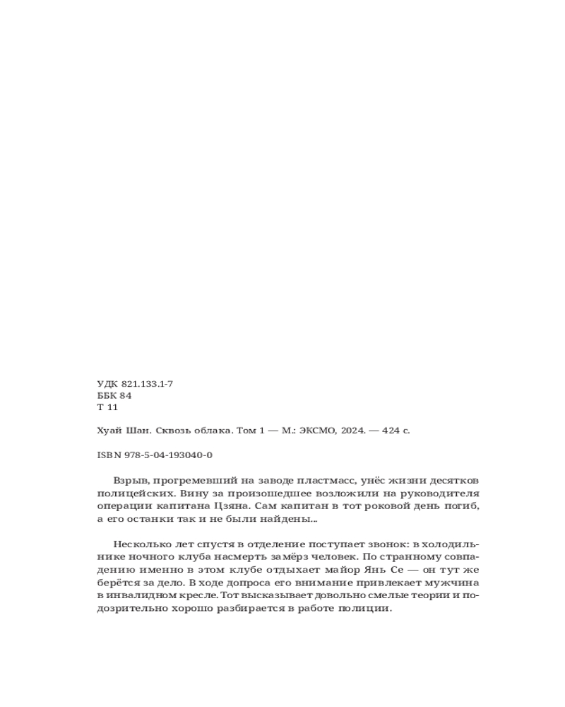 💳 Оплатить за товар можно при получении 🇰🇿 Есть бесплатная доставка по Казахстану от 1 дня 🎁 Копите бонусы с каждой покупки Серия: Комильфо. Китайские романы и маньхуа Взрыв, прогремевший на заводе пластмасс, унёс жизни десятков полицейских. Вину за произошедшее возложили на руководителя операции капитана Цзяна. Сам капитан в тот роковой день погиб, а его останки так и не были найдены... |
