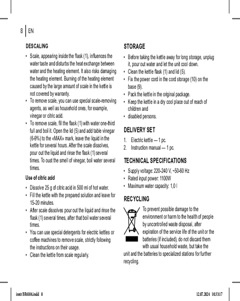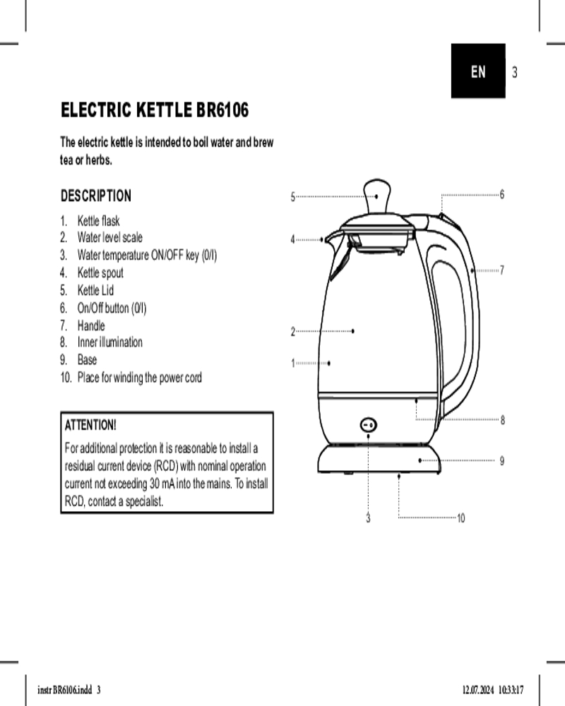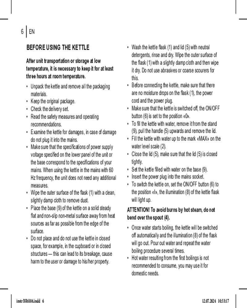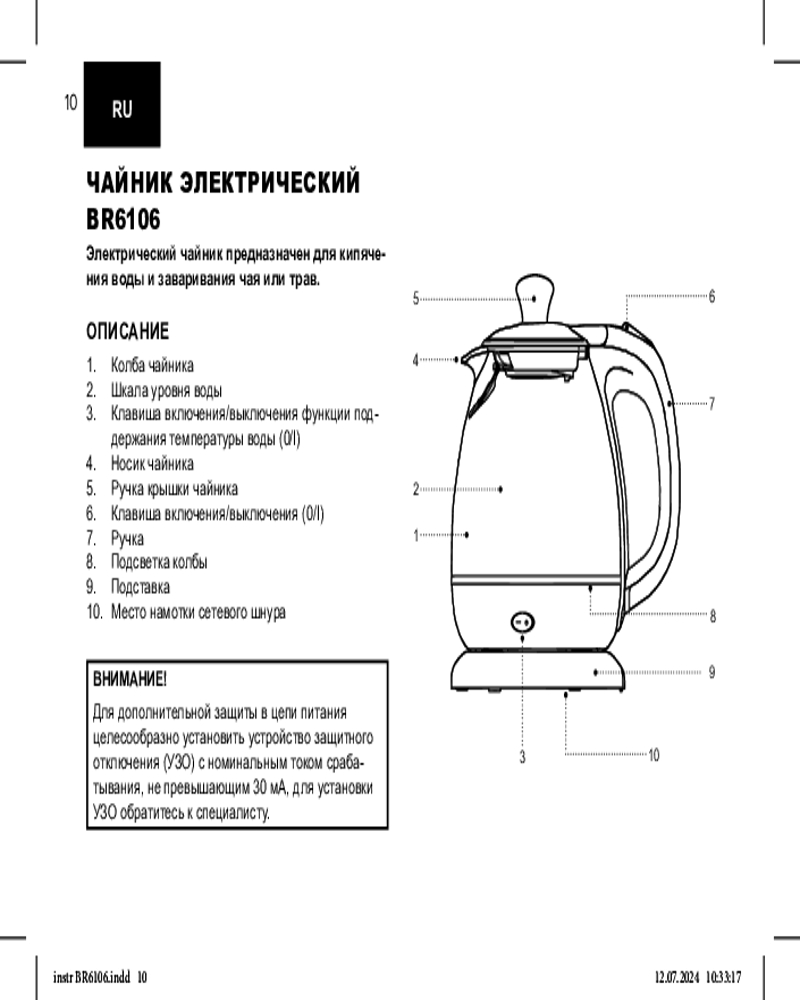 💳 Оплатить за товар можно при получении 🇰🇿 Есть бесплатная доставка по Казахстану от 1 дня 🎁 Копите бонусы с каждой покупки Электрический чайник Brayer BR6106 с максимальной мощностью 1100 Вт и объемом 1 литр выполнен из высокопрочного термостойкого стекла. Чайник оснащен функцией поддержания температуры и внутренней подсветкой, создающей эффектный визуальный акцент. Для безопасности предусмотрены автоотключение при закипании воды и отключение при отсутствии воды. Моющийся фильтр и противоскользящее основание обеспечивают удобство в использовании. Электропитание: 220-240 В, ~50-60 Гц. |