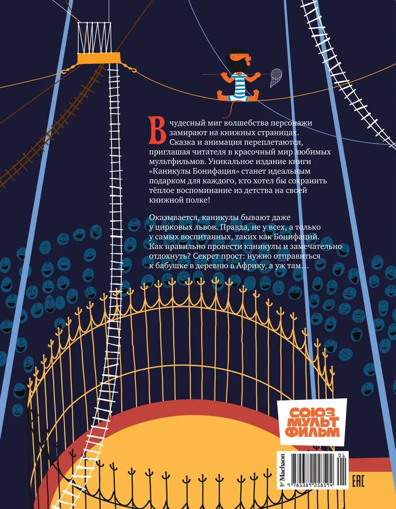 💳 Оплатить за товар можно при получении 🇰🇿 Есть бесплатная доставка по Казахстану от 1 дня 🎁 Копите бонусы с каждой покупки Серия: Классика мультфильмов В чудесный миг волшебства персонажи замирают на книжных страницах. Сказка и анимация переплетаются, приглашая читателя в красочный мир любимых мультфильмов. Уникальное издание книги «Каникулы Бонифация» станет идеальным подарком для каждого, кто хотел бы сохранить тёплое воспоминание из детства на своей книжной полке! Оказывается, каникулы бывают даже у цирковых львов. Правда, не у всех, а только у самых воспитанных, таких как Бонифаций. Как правильно провести каникулы и замечательно отдохнуть — секрет прост: нужно отправиться к бабушке в деревню в Африку, а уж там... |
