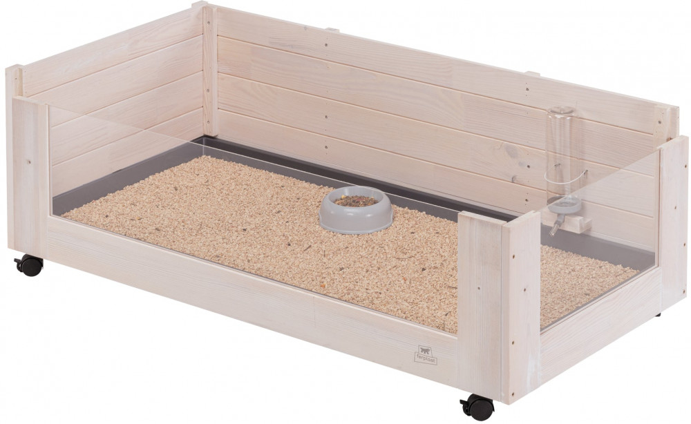 Современный дизайн с прозрачными пластиковыми стенками обеспечивает полный обзор животного, позволяя вам легко наблюдать за поведением вашего друга. Полностью открытый верх обеспечивает комфортное взаимодействие с животными, а также облегчает ежедневный уход. Кроме того, сняв прозрачную переднюю часть, можно установить деревянную лесенку, чтобы морские свинки могли свободно входить и выходить, с любопытством изучая окружающее пространство.