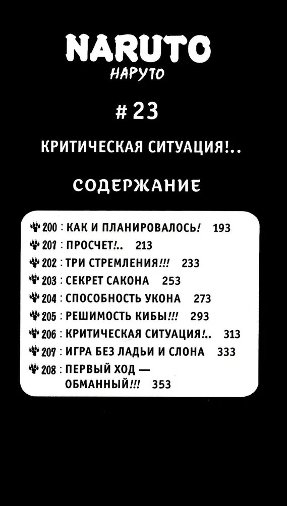 В восьмом томе возжелав обрести невероятную силу, Саскэ покидает Деревню, Скрытую в Листве и отправляется к Оротимару вместе с Четверкой Звука. Узнав о случившемся, Цунадэ, недавно нареченная пятой хокагэ, высылает вслед за беглецом Сикамару, Наруто, Тёдзи, Нэдзи и Кибу. Они быстро настигают опасных противников, однако тут же сталкиваются с серьезной проблемой: подручные Оротимару решают разделиться. Тёдзи в одиночку вступает в битву с Дзиробо, убедив товарищей продолжить погоню без него. Успеют ли юные синоби Листвы добраться до Саскэ или старания Тёдзи окажутся напрасными?.. |