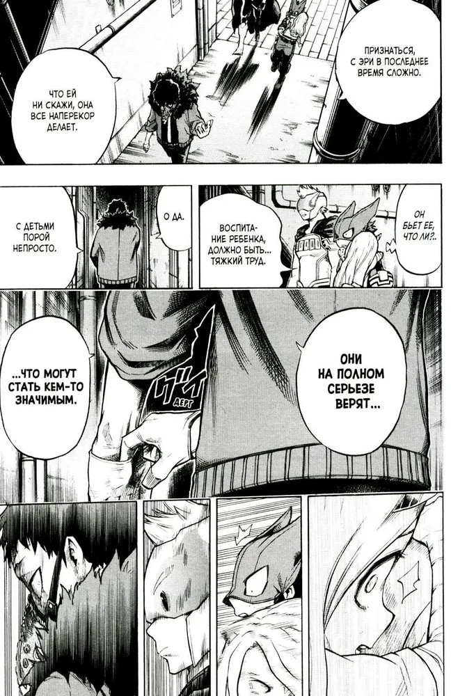 В восьмом томе попав на стажировку в агентство Ночноглаза, Мидория узнаёт страшную правду. Оказывается, Сэр видел печальное будущее Всемогущего — и оно вот-вот станет явью. Тем временем преступная группировка во главе с Тисаки ведет переговоры с Альянсом Злодеев. У якудза есть некий план по «разрушению устоев». Для этого в подземельях своей штаб-квартиры они разрабатывают особое вещество, обладающее пагубными для причуд свойствами... |