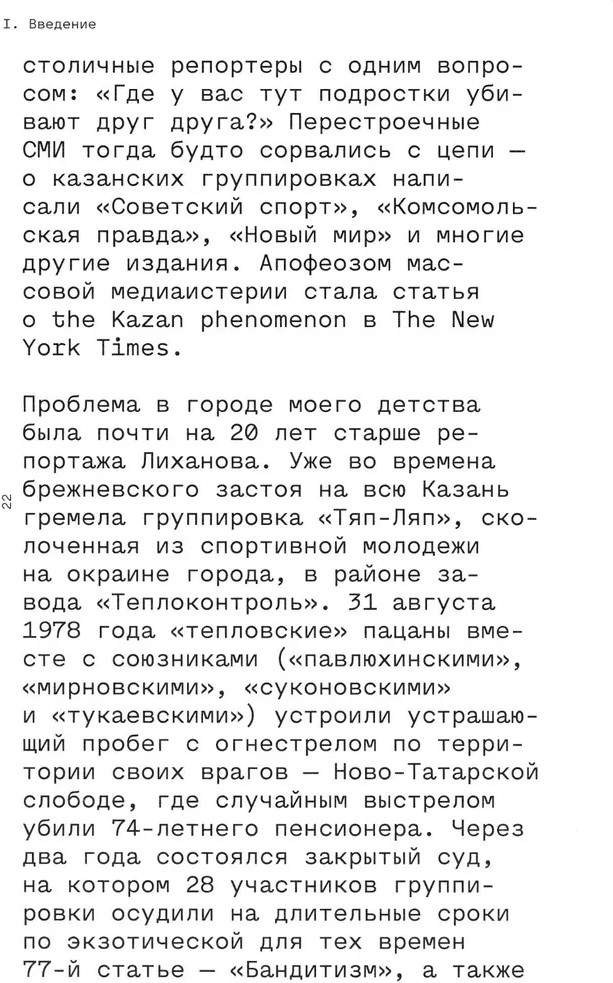 💳 Оплатить за товар можно при получении 🇰🇿 Есть бесплатная доставка по Казахстану от 1 дня 🎁 Копите бонусы с каждой покупки Если вы выросли в России в конце XX века, то в вашей жизни были уличные драки. Эта книга о тех, кто сделал насилие своим кредо: бил и попадал под раздачу — профессионально, ежедневно, беспощадно. Это пацаны, участники бесчисленных молодежных группировок, наводнивших поздний Советский Союз. Первым городом, в котором явление стало по-настоящему массовым, была Казань.Роберт Гараев, автор этой книги, попал в «Низы», одну из местных банд, еще в средней школе. Спустя 30 лет он решил выяснить, откуда взялся казанский феномен — полторы сотни подростковых группировок, что сначала «делили асфальт» в драках район на район, а затем начали массово истреблять себе подобных, — и как вспоминают те суровые дни сами пацаны, бывшие сотрудники милиции, адвокаты и простые жители города, обезображенного страхом и жестокостью. Это единственная книга, целиком составленная из голосов выживших — и желающих рассказать правду. |