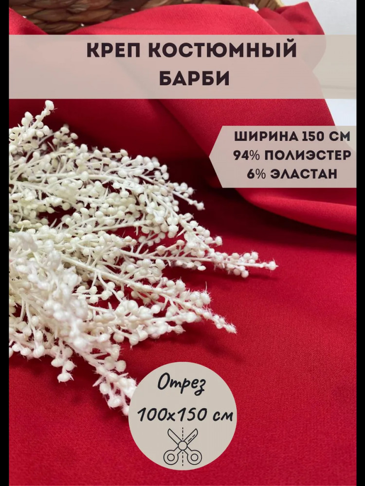 Kopelyan Ткань для пошива костюмная «Барби» красный, плотность 270 гр, отрез 1 метр
