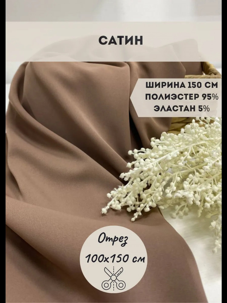 Kopelyan Ткань для пошива плательная «Сатин» капучино, плотность 120 гр, отрез 1 метр
