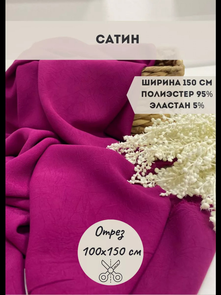 Kopelyan Ткань для пошива плательная «Сатин» фуксия, плотность 120 гр, отрез 1 метр