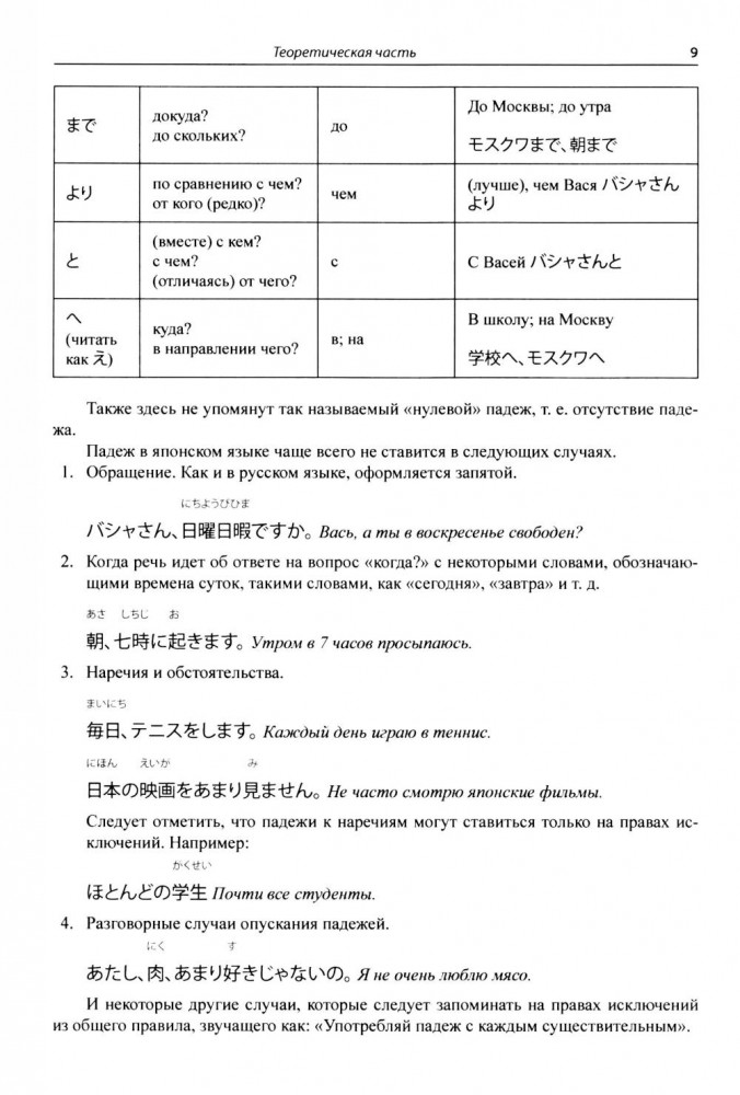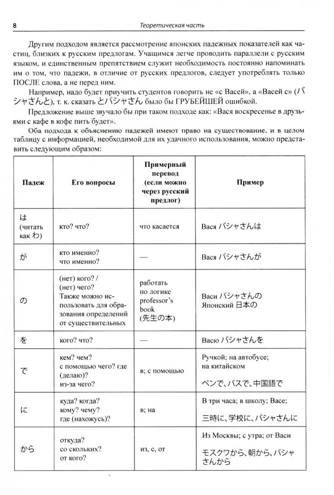 Японские падежи. Значение и употреблениеВ данный момент этот товар отсутствует в продаже. Возможно, у нас найдется аналогичный или похожий товар здесь. Предлагаемое учебное пособие адресовано лицам, изучающим японский язык, и предназначено как для развития практических навыков работы с активно применяемыми падежными показателями, так и для отработки умений составления несложных предложений. Особенно полезным данное издание будет на начальном этапе освоения японского языка, когда закладывается фундамент знаний о принципах работы его грамматики и структуры. Каждая глава пособия посвящена определенной теме и снабжена иллюстрациями, упрощающими восприятие материала учащимися. К главам прилагаются упражнения на отработку и закрепление материала, которые можно выполнять как в связке с преподавателем, так и самостоятельно благодаря наличию ответной части в конце пособия. |
