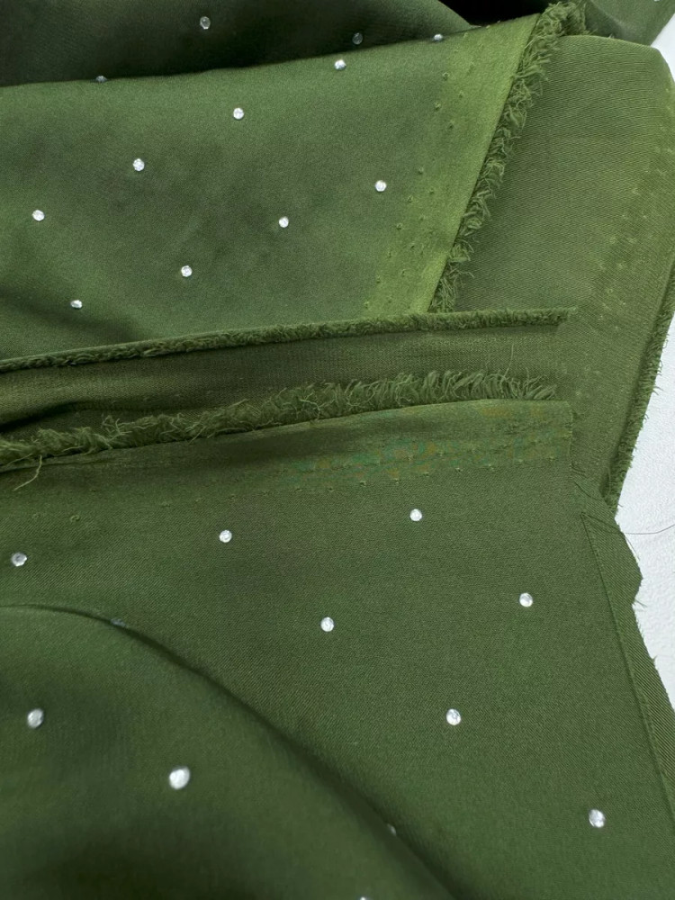 Kopelyan Ткань для пошива со стразами «Атлас стрейч» зеленый, плотность 110 гр, отрез 1 метр