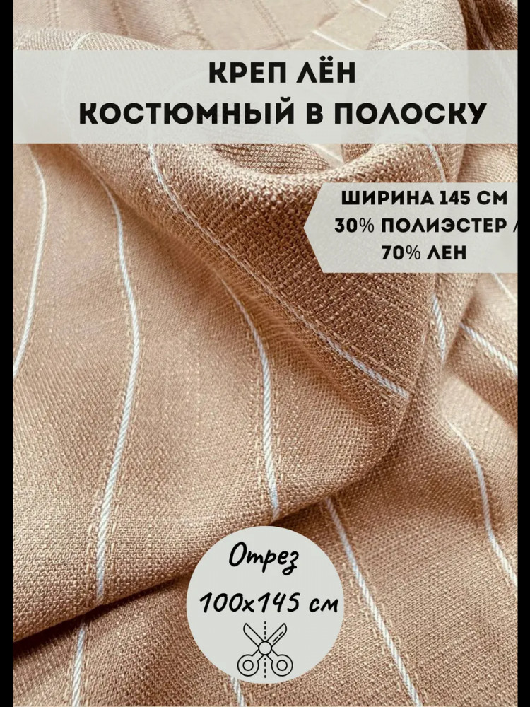 Kopelyan Ткань костюмная «Креп-лен» золотисто-бежевый, плотность 220 гр, отрез 1 метр