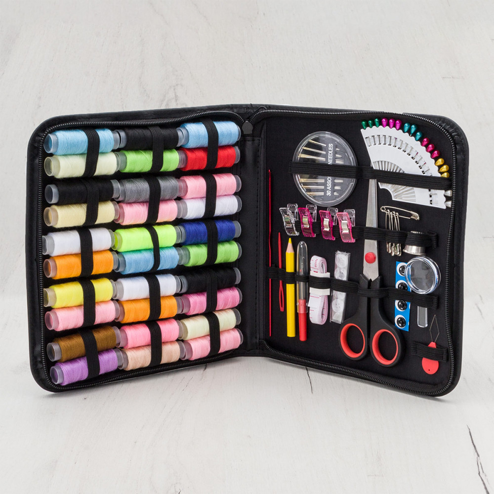 💳 Оплатить за товар можно при получении 🇰🇿 Есть бесплатная доставка по Казахстану от 1 дня 🎁 Копите бонусы с каждой покупки Компактный набор от Hobby&Pro пригодится всем, кто занимается шитьем, рукоделием, мелким ремонтом одежды. Содержимое набора находится в удобном чехле на молнии, который оснащён одним просторным отделением. Эта модель обладает хорошей вместимостью и предназначена для хранения 106 предметов. Надёжные резинки, закреплённые внутри основного отделения, прочно удерживают швейные принадлежности, способствуют поддержанию порядка и позволяют легко просматривать содержимое. С помощью комплектующих из этого набора вы сможете: |