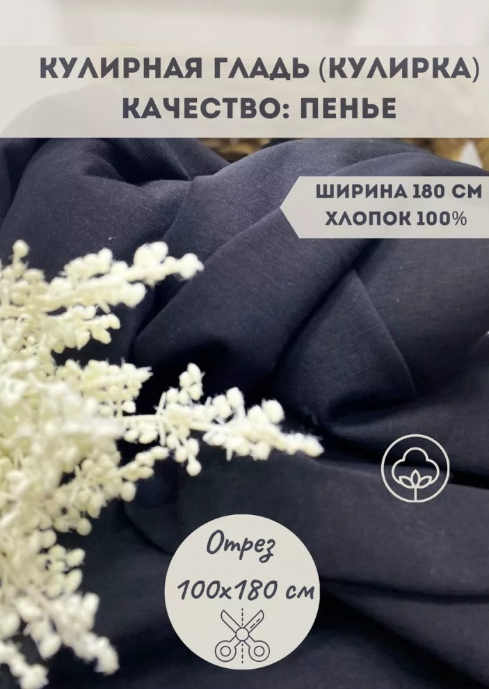 Kopelyan Трикотажная ткань «Кулирная гладь» черный, плотность 210 гр, отрез 1 метр