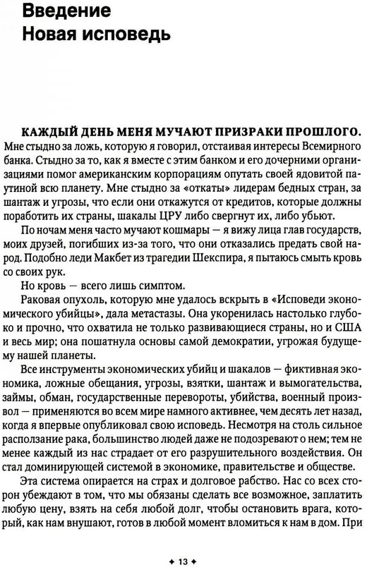 Книга Джона Перкинса — первый в мире автобиографический рассказ о жизни, подготовке и методах работы особой сверхзасекреченной группы «экономических убийц», профессионалов высочайшего уровня, призванных работать с высшими политическими и экономическими лидерами интересующих США стран мира. Их задача — порабощать целые страны и народы, навязывая мегапроекты-ловушки, якобы обеспечивающие ускорение развития, а на деле оборачивающиеся включением некогда суверенных государств в состав новой глобальной империи. В книге-исповеди, ставшей в США и Европе бестселлером, Джон Перкинс раскрывает тайные пружины мировой экономической политики, объясняет странные «совпадения» и «случайности» недавнего времени, круто изменившие нашу жизнь.