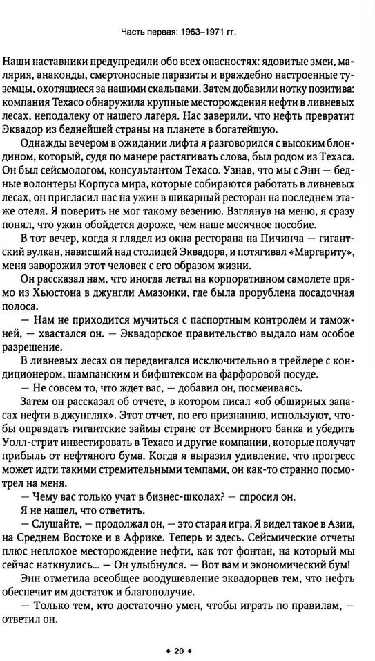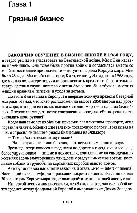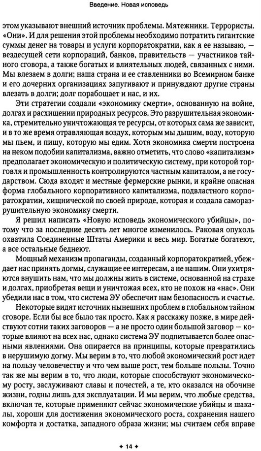 Страх и долги — вот на чем строится система экономических убийств. Нас запугивают, чтобы мы платили любые деньги, влезали в любые долги. Система экономических убийств — фиктивная экономика, взятки, слежка, обман, долги, государственные перевороты, убийства, злоупотребление военной силой — превратилась в доминирующую экономическую, государственную и социальную систему. Джон Перкинс стал первым, кто рассказал о чудовищных по своей циничности тайных операциях спецслужб и олигархических кланов Америки, которые они проворачивают во всем мире. По степени важности раскрытых им схем в одном ряду с ним стоят современные разоблачители — Джулиан Ассанж и Эдвард Сноуден, за которыми теперь ведется охота спецслужбами США. |