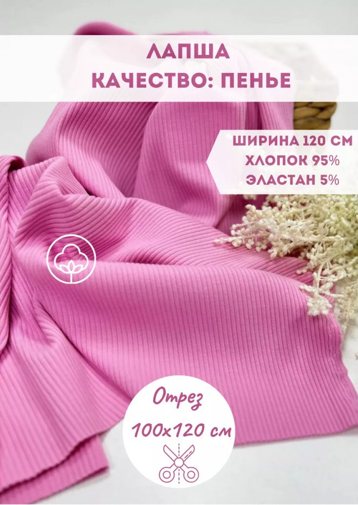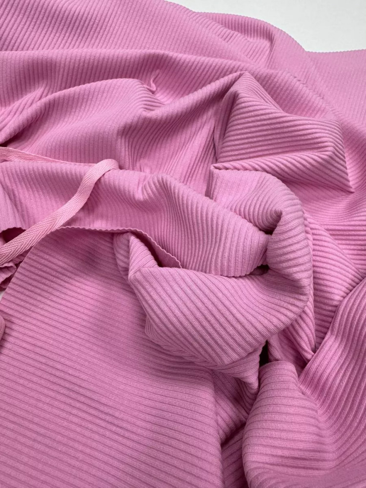 Kopelyan Трикотажная ткань в рубчик «Лапша» розовый, плотность 210 гр, отрез 1 метр