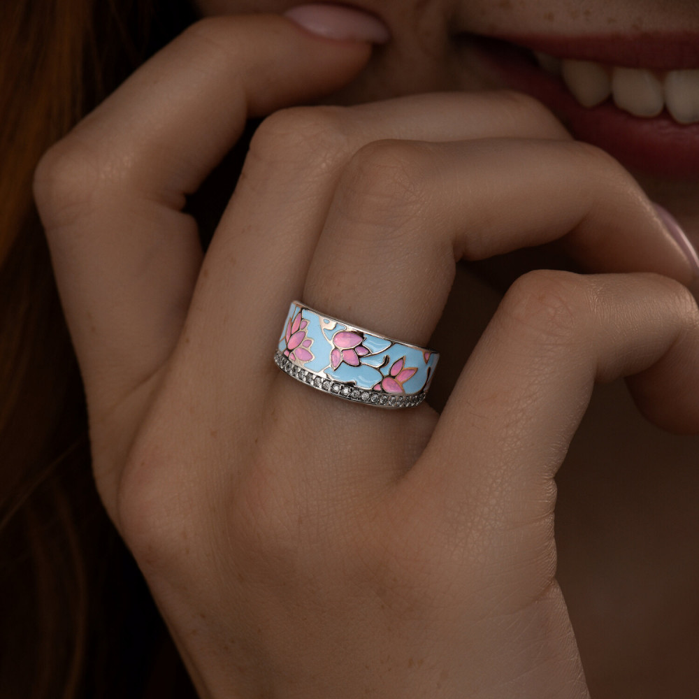 SOKOLOV Кольцо из серебра с фианитами и эмалью
