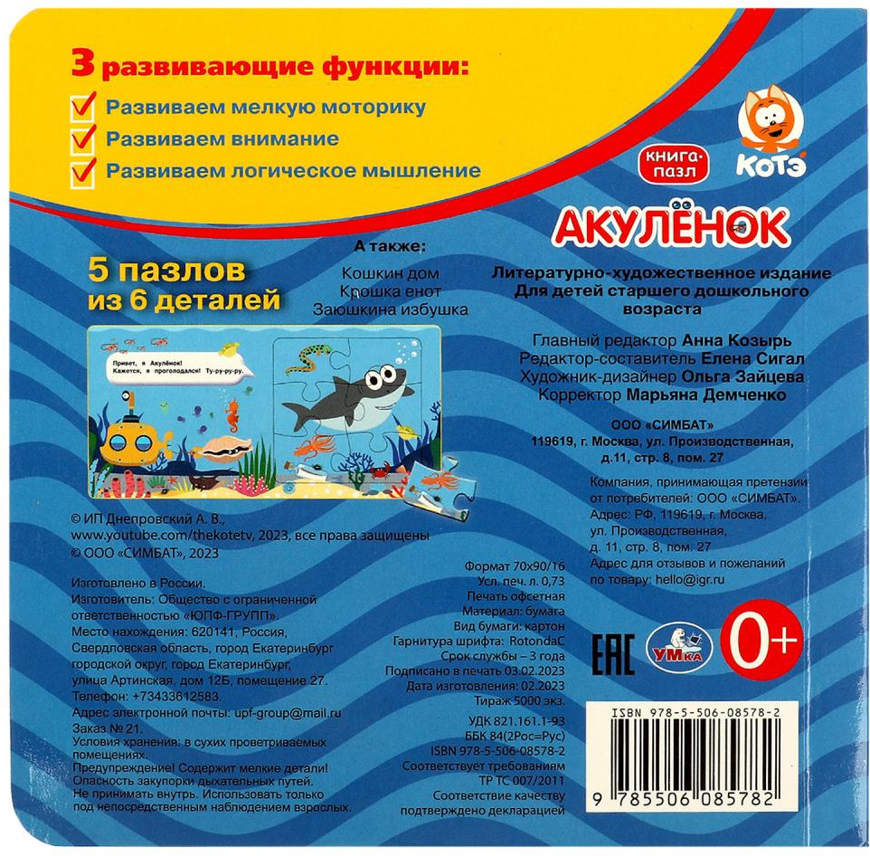 💳 Оплатить за товар можно при получении 🇰🇿 Есть бесплатная доставка по Казахстану от 1 дня 🎁 Копите бонусы с каждой покупки Книга-пазл «Котэ ТВ. Акулёнок» ТМ «УМка» станет прекрасным подарком для малышей. Данная книга выполняет сразу 2 функции: это и книга для чтения, и игра в пазлы. На каждом развороте малыша ждёт интересное повествование, а также яркий пазл с изображением любимых персонажей. Книжка изготовлена из плотного картона, поэтому мамы могут не опасаться, что ребёнок порвёт странички. Благодаря удобному формату книгу можно взять с собой в дорогу. Чтение книги с пазлами ТМ «УМка» и игра с ней развивают: образное мышление, мелкую моторику, логическое мышление, фантазию и внимание. |