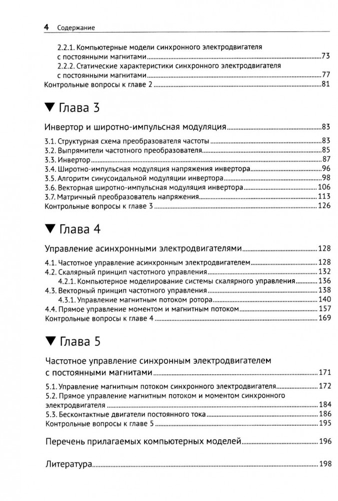 💳 Оплатить за товар можно при получении 🇰🇿 Есть бесплатная доставка по Казахстану от 1 дня 🎁 Копите бонусы с каждой покупки На уровне базового инженерного образования приведены общие сведения о компонентах современного управляемого электропривода: электродвигателей переменного тока, преобразователей частоты, принципах их действия и алгоритмах управления. Рассмотрены общие вопросы построения структуры автоматизированного электропривода и алгоритмы управления асинхронными электродвигателями и синхронными электродвигателями с постоянными магнитами, а также методами создания математических и компьютерных моделей их систем управления. Все излагаемые теоретические вопросы иллюстрируются компьютерными моделями, созданными в программном комплексе SimulTech. Издание предназначено для обучающихся по инженерным, не электрическим направлениям, а также может быть полезно всем техническим специалистам, желающим ознакомиться с основами построения и функционирования современных автоматизированных электроприводов на основе электродвигателей переменного тока. |
