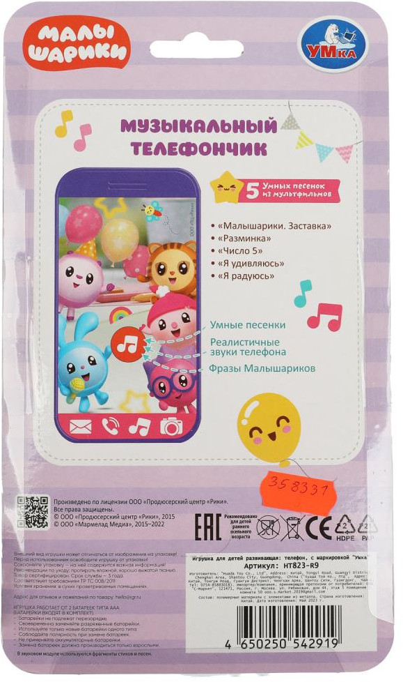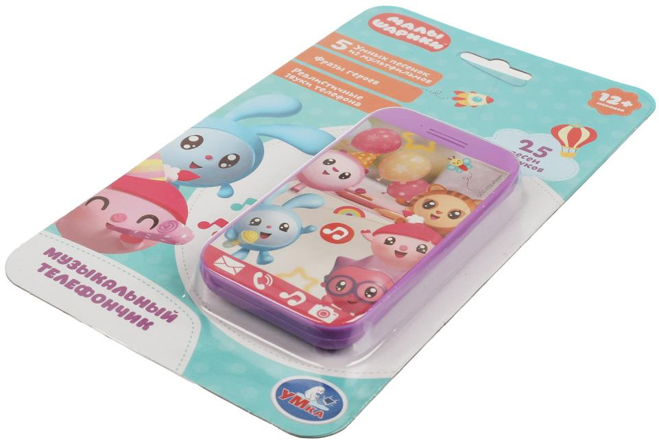УМка Телефон музыкальныйВ данный момент этот товар отсутствует в продаже. Возможно, у нас найдется аналогичный или похожий товар здесь. Серия: Малышарики Музыкальный телефончик серии «Малышарики» ТМ «УМка» непременно понравится маленьким поклонникам одноимённого мультсериала. Яркий телефон с весёлыми песенками и изображениями персонажей любимого мультсериала непременно понравится малышу. Он без труда сможет управлять игрушкой с помощью одной единственной кнопки, которая при каждом нажатии активирует воспроизведение песенок и звуков. Благодаря компактному размеру игрушку удобно брать с собой на прогулки и в путешествия. Музыкальный телефон ТМ «УМка» развивает: память, слуховое восприятие, музыкальный слух, тактильные навыки, визуальное восприятие и моторику. |