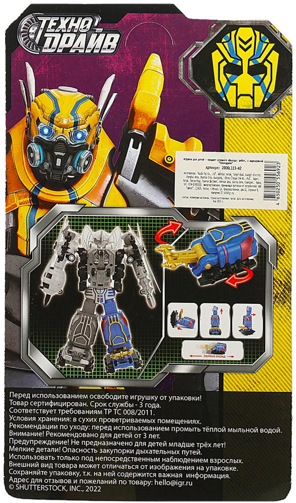 Технодрайв Робот-трансформерВ данный момент этот товар отсутствует в продаже. Возможно, у нас найдется аналогичный или похожий товар здесь. Серия: Супербот Насекомое, трансформирующееся в робота «Супербот» ТМ «Технодрайв» станет отличным подарком для ребёнка. Эта игрушка в виде насекомого непременно понравится юному фантазёру. Оно умеет ездить: потяните игрушку назад, отпустите, и она быстро поедет вперёд. Если собрать всю коллекцию из 5 насекомых, то из них можно будет сконструировать одного большого робота — инструкция по сборке на обороте упаковки. Это позволит придумать дополнительные сюжеты для занимательных игр. Игра с трансформирующимся насекомым ТМ «Технодрайв» развивает: фантазию, моторику, пространственно-образное мышление и логику. |
