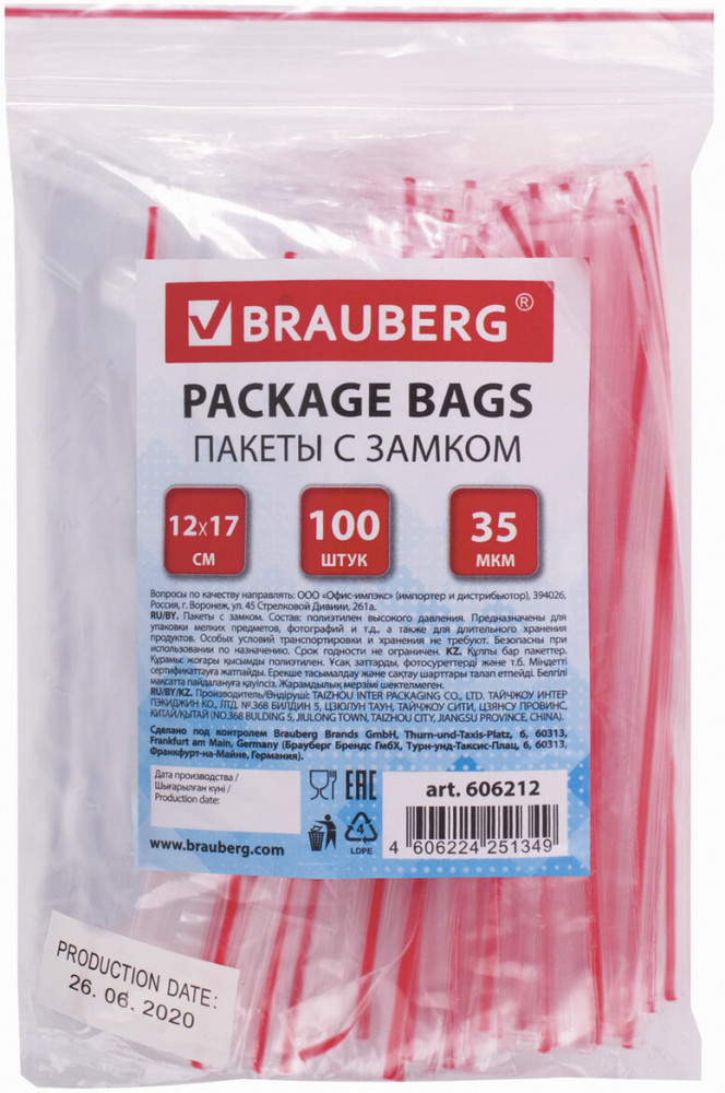 Brauberg Набор пакетов с zip-замком