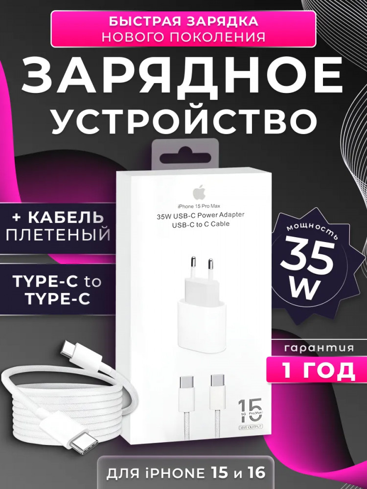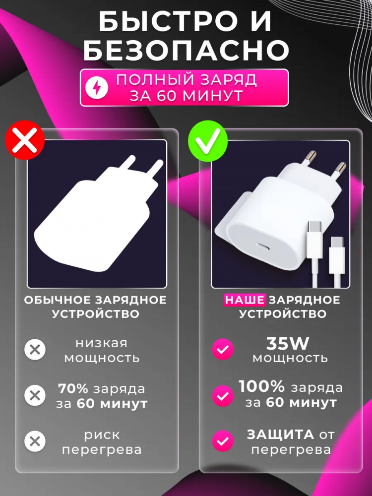 Зарядка Type-c для iPhone 15, 16 Pro и Pro Max и Android 35W-30% +105
