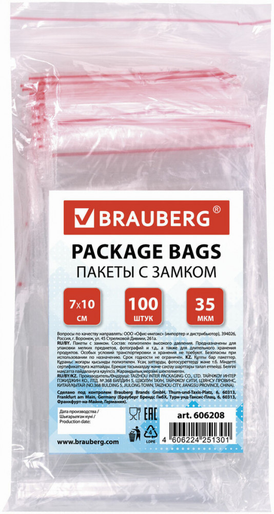 Brauberg Набор пакетов с zip-замком