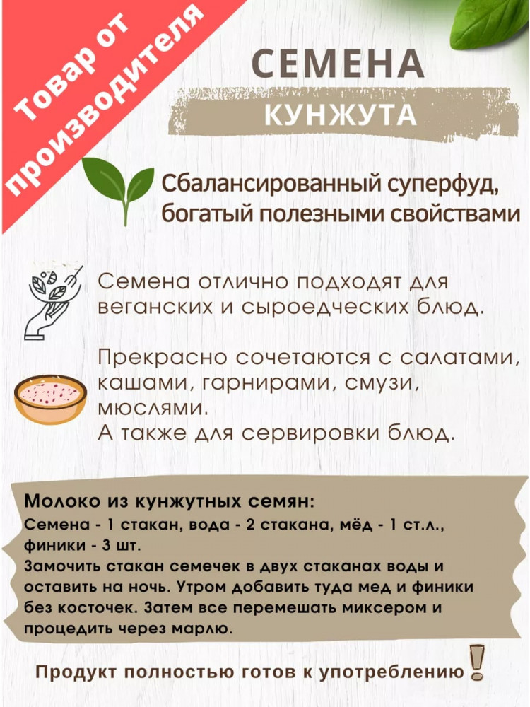 💳 Оплатить за товар можно при получении 🇰🇿 Есть бесплатная доставка по Казахстану от 1 дня 🎁 Копите бонусы с каждой покупки Семена кунжута белые- сбалансированный суперфуд. Продукт полностью готов к употреблению. Семена кунжута белые отлично подходят для веганских и сыроедческих блюд. Прекрасно сочетаются с салатами, кашами, гарнирами, смузи, мюслями. А так же подходят для сервировки блюд. |