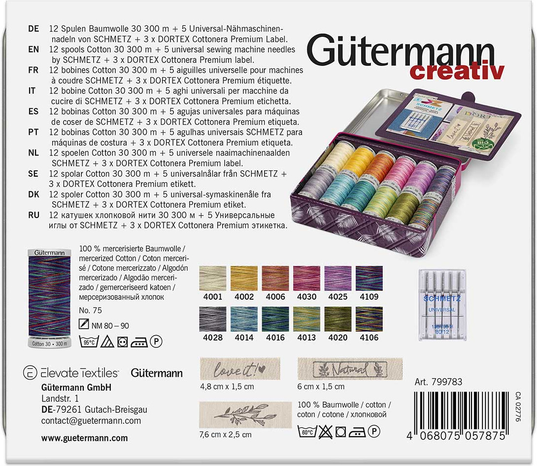 Gutermann Набор швейныйВ данный момент этот товар отсутствует в продаже. Возможно, у нас найдется аналогичный или похожий товар здесь. Стильная коробка для хранения с 12 катушками хлопка 300 м меланжевых оттенков, 5 универсальными иглами для швейной машины размером 80 Schmetz и 3 этикетками из хлопка от Dortex. Высококачественная хлопчатобумажная нить подходит не только для шитья, но и для квилтинга, объемных декоративных строчек. Сумки, чехлы для подушек или одежду можно красиво украсить декоративной строчкой. Нити Cotton- прекрасный выбор для тех, кто любит вышивать, заниматься рукоделием. Благодаря современным технологиям производства нитки прочные, равномерные по всей длине, что позволяет шву ложиться ровно. Имеют хорошую стойкость окраски, при этом не вызывают аллергии. Качество ниток Gutermann подтверждается также сортом хлопчатника, из которого они изготовлены. |