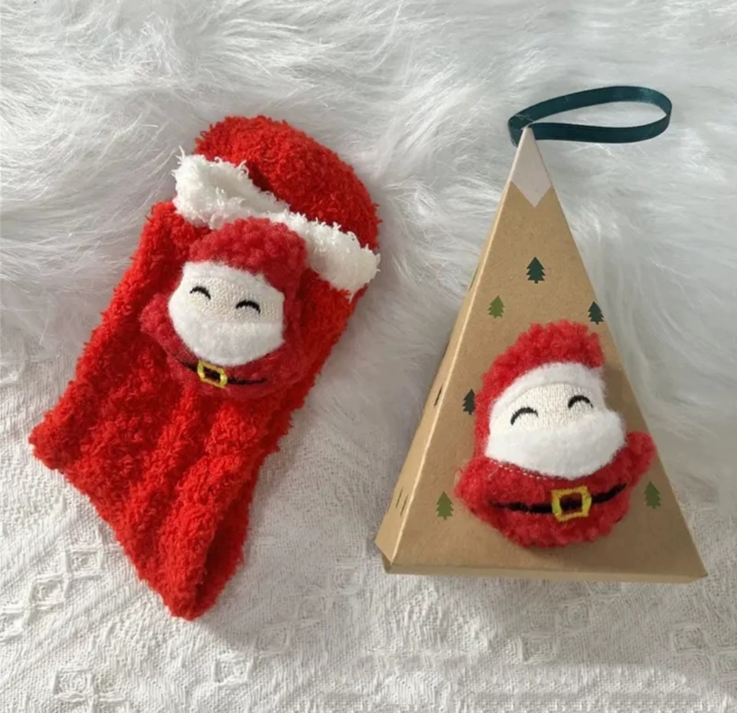 Новогодние пушистые носки с объемным принтом в подарочной коробке