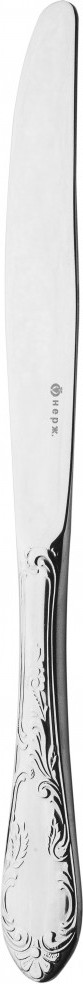 Столовый нож Посольский подойдёт для будничных обедов и праздничной подачи блюд. Нож приятно держать в руке. Он лёгкий, имеет оптимальную длину лезвия с острой заточкой для качественного разделывания пищи. Изготовлен из пищевой нержавеющей стали, которая не требует сложного ухода, надолго сохраняет внешний вид и потребительские качества.