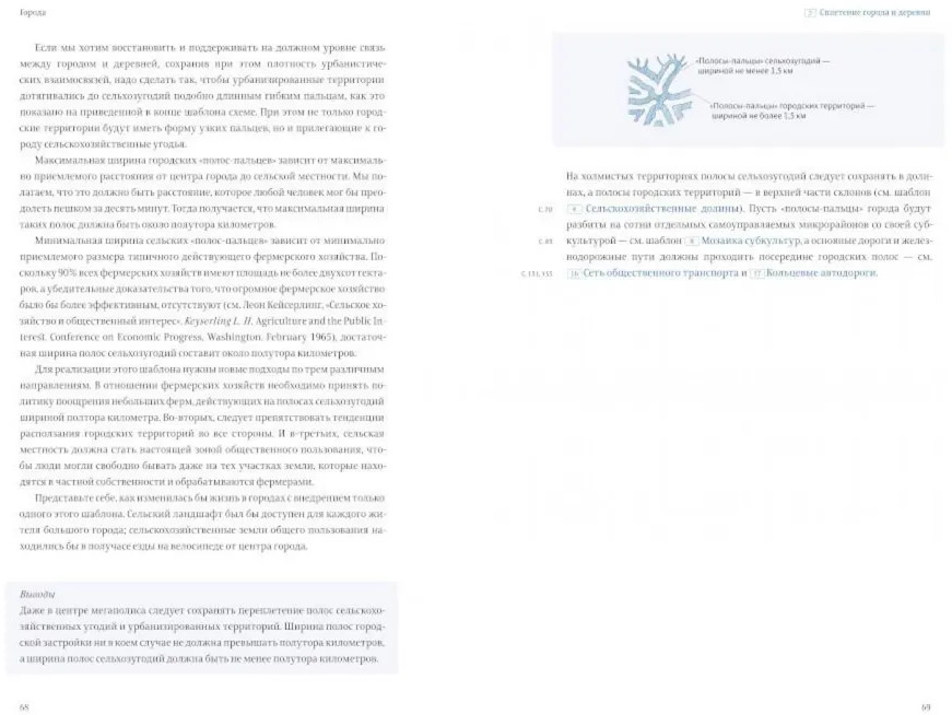 В этой книге, впервые опубликованной в 1977 году, представлен радикально новый подход к архитектуре и строительству. Авторы считают, что люди сами должны проектировать свои дома, улицы и районы, и эта идея опирается на простое наблюдение: самые замечательные места на планете были созданы не архитекторами, а обычными людьми. В книге описан «язык» для проектирования окружающей среды, единицы которого — шаблоны, или паттерны, — отвечают на архитектурные вопросы: какой высоты сделать окна, сколько этажей должно быть в здании, какую площадь в микрорайоне отвести под деревья и газоны. Издание содержит более 250 шаблонов — каждый включает описание той или иной проблемы, ее обсуждение, подкрепляемое иллюстрацией, и решение. С помощью этой книги возможно спроектировать дом для себя и своей семьи, разработать проект офиса, рабочей мастерской или общественного здания, совместно с соседями улучшить свой район и даже весь город. |