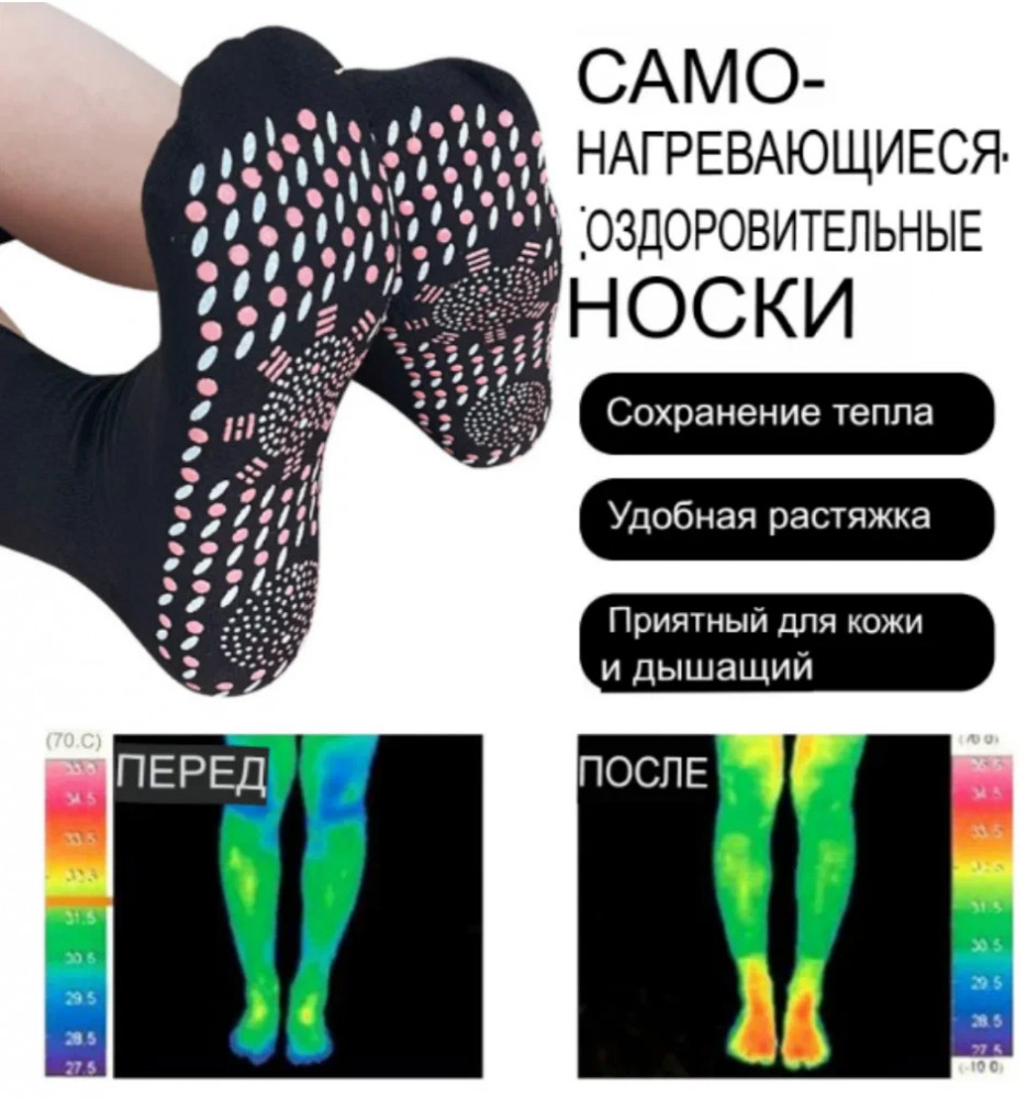 Турмалиновые носки имеют отличные вентиляционные и антибактериальные свойства. Рекомендовано применение воспалении вен ног, васкулите, пяточной шпоре онемении и обморожении ног; подагре, трещинах на ногах, при отечности ног, переломах и растяжениях, для улучшения кровообращения (очищается кровь, снижается вязкость крови) и повышения иммунитета организма.