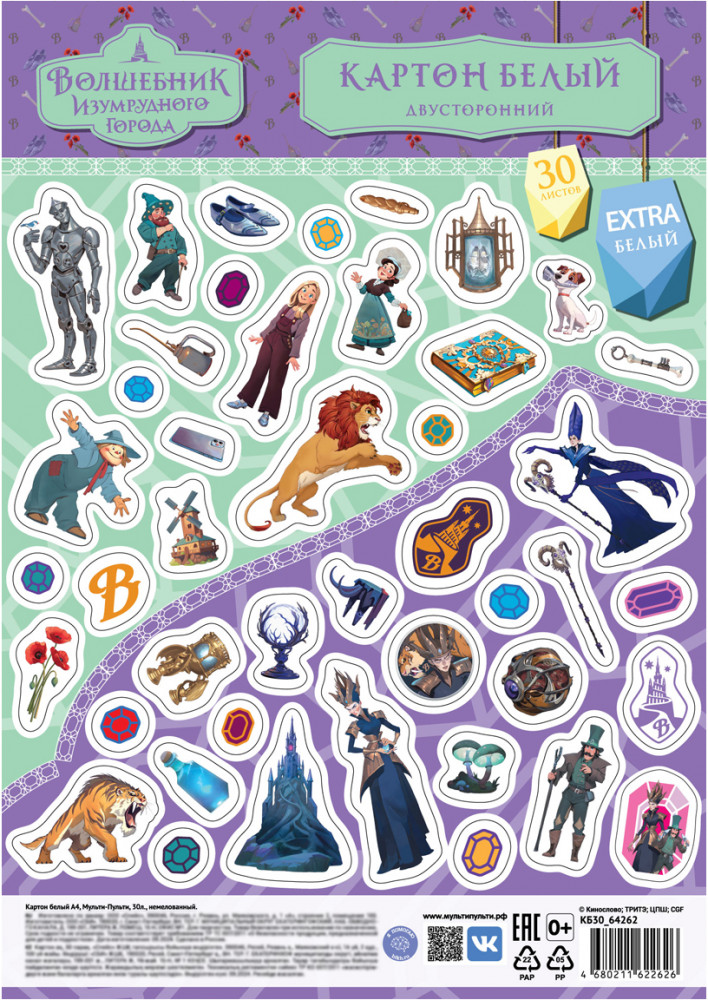 💳 Оплатить за товар можно при получении 🇰🇿 Есть бесплатная доставка по Казахстану от 1 дня 🎁 Копите бонусы с каждой покупки Серия: Волшебник Изумрудного города Набор белого немелованного картона «Мульти-Пульти» серии «Волшебник Изумрудного города» — это отличное решение для творчества! Дизайн обложки с героями сказочной истории сделан из наклеек с героями и артефактами, которые можно отклеить и украсить тетрадь или применить как элемент творческого рисунка. В наборе используется плотный высококачественный картон с матовой немелованной поверхностью и белым оборотом. |