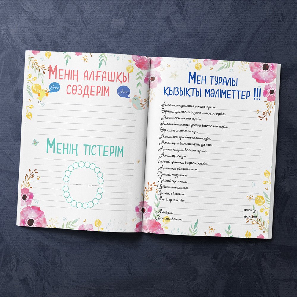 💳 Оплатить за товар можно при получении 🇰🇿 Есть бесплатная доставка по Казахстану от 1 дня 🎁 Копите бонусы с каждой покупки Менің алғашқы альбомым. Альбом для малыша в твердой обложке. Қыз балаға арналған. Альбом ішінде 60 суретке орын бар. 34 тақырып (қырқынан шығару, тұсау кесу, менің бауырларым, ата-әжесі, менің жетістіктерім, жеті ата, әз наурыз, мен туралы қызықты мәліметтер) бар. Қазақы дәстүрді дәріптейтін отбасыға арналған балаңыздың алғашқы альбомы. Альбом балаңызбен өткізген қызықты, ең тәтті естеліктерді сақтайтынына сенеміз! |