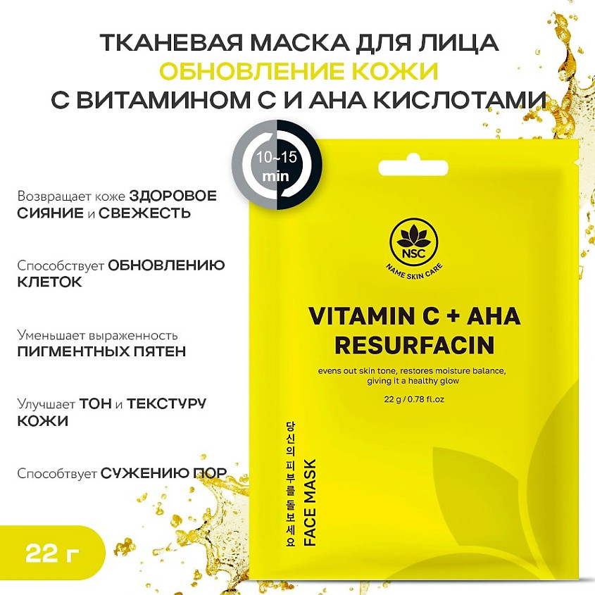 Name skin care Набор масок для лица с витамином C и AHA кислотами «Vitamin C + AHA Resurfacin»