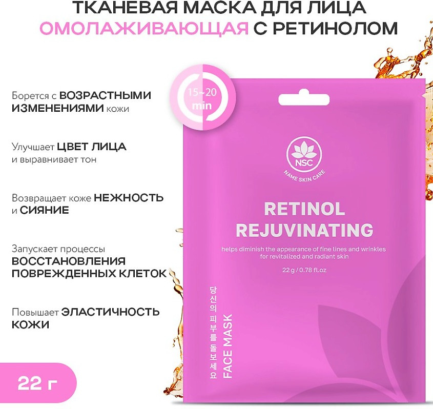 Name skin care Набор масок для лица омолаживающая с ретинолом «Retinol Rejuvinating»