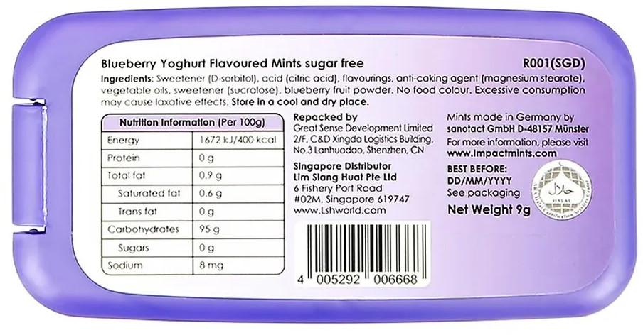 Impact Mints Драже без сахара освежающее со вкусом йогурта с голубикой «Yogmi»