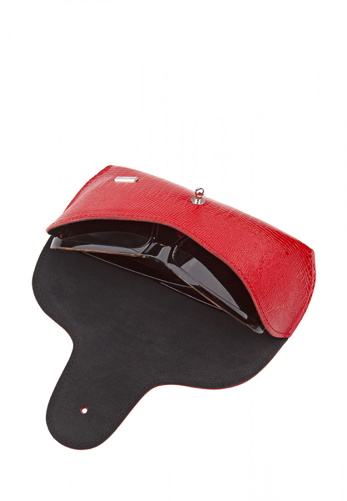 Футляр для очков из натуральной кожи. Имеет мягкую подкладку, закрывается на кобурную кнопку. Футляр подходит для солнцезащитных очков глубиной до 4,5 см.