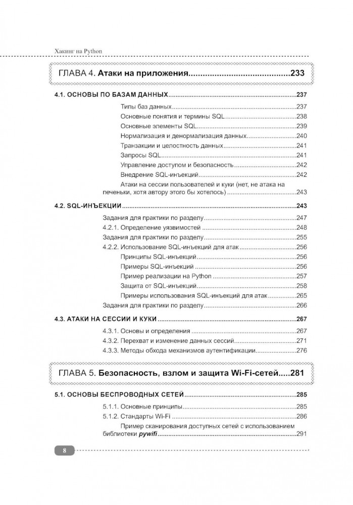 В начале каждого раздела приводится список ключевых терминов, инструментов и сервисов, которые будут разобраны в этой главе и могут быть полезны для углубленного изучения темы. Также в книге вы найдете множество практических примеров и заданий, которые предназначены для самостоятельного выполнения, они помогут вам научиться решать реальные задачи и эффективно применять полученные знания в практической деятельности, а именно: писать скрипты для автоматизации задач кибербезопасности; анализировать сетевой трафик и выявлять потенциальные угрозы; разрабатывать собственные инструменты для тестирования на проникновение; использовать криптографию для защиты данных; создавать системы обнаружения вторжений и реагирования на инциденты. Книга предназначена для широкого круга пользователей и не требует серьезных знаний для большинства задач, кроме уверенных навыков работы с компьютером. А для тех, кто хочет освоить приемы «посерьезнее», потребуется знание основ программирования. |