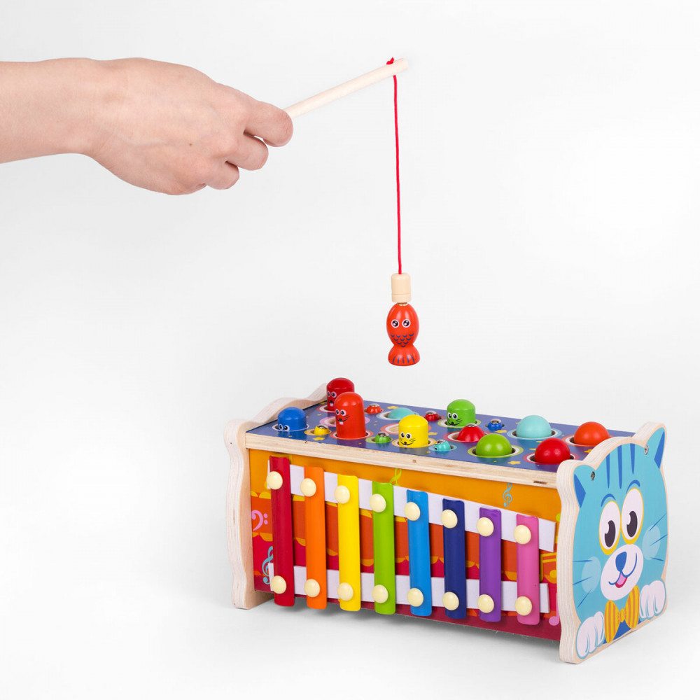 💳 Оплатить за товар можно при получении 🇰🇿 Есть бесплатная доставка по Казахстану от 1 дня 🎁 Копите бонусы с каждой покупки Развивающий и обучающий игровой центр поможет малышу получать базовые навыки и изучать мир весело. В игровом центре скрыто множество возможностей для развлечений и обучения: в игре с молоточком ваш малыш сможет проявить свою активность и развить моторику, магнитная рыбалка позволяет ловить рыбок и червячков с помощью удочки, развивая ловкость и координацию движений, сортер с шариками разных цветов поможет ребенку узнать различные цвета, а также научиться сопоставлять их, пчелка-трещалка развивает моторику и слуховое восприятие, металлофон с разноцветными клавишами позволяет малышу освоить первые ноты и развить музыкальные навыки. Натуральные материалы игры безопасны для ребенка, на игрушку нанесена нетоксичная краска, отсутствуют острые края и углы. |