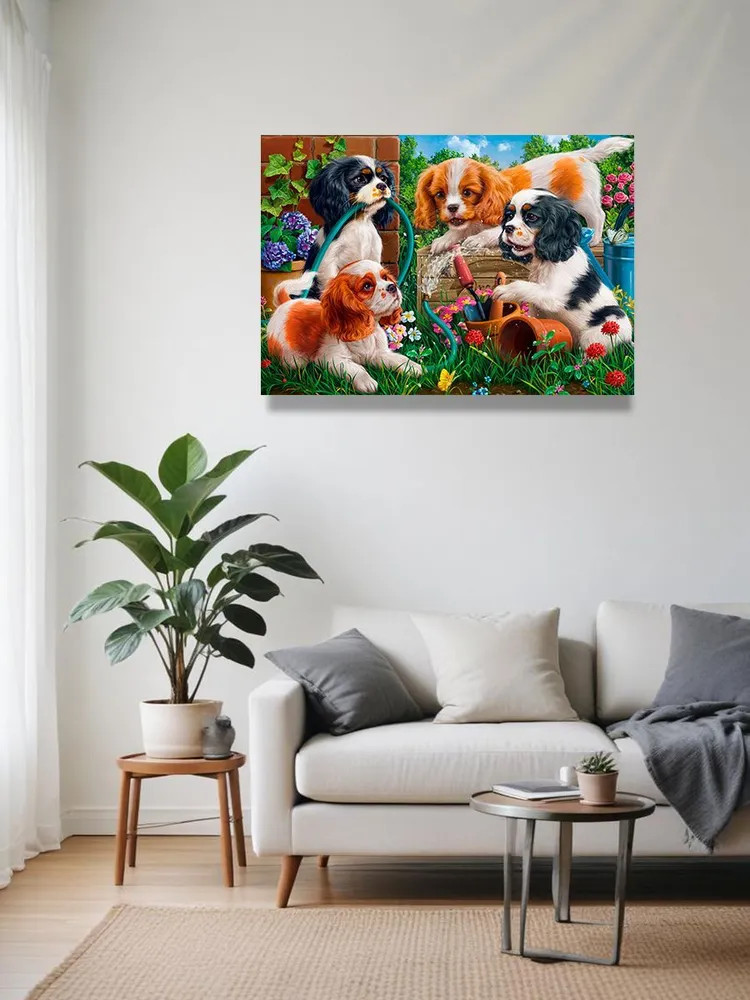Рыжий кот Пазл «Щенки спаниеля в саду»+18
