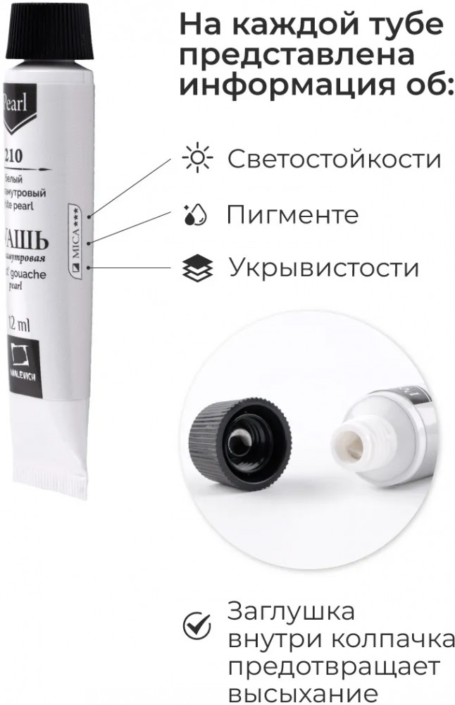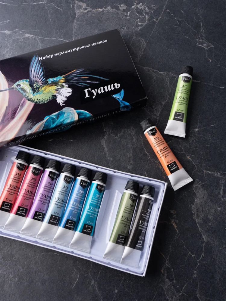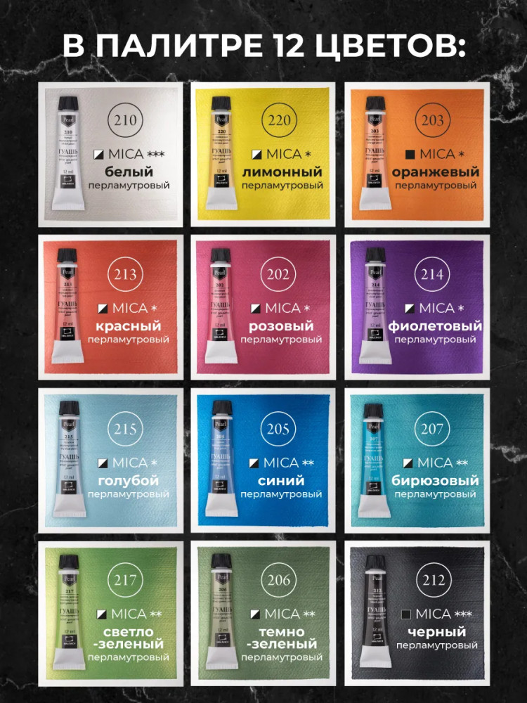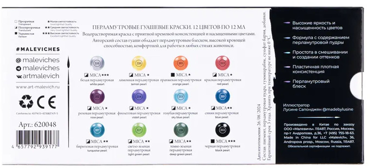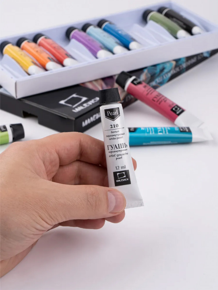 💳 Оплатить за товар можно при получении 🇰🇿 Есть бесплатная доставка по Казахстану от 1 дня 🎁 Копите бонусы с каждой покупки Новая художественная гуашь Малевичъ — перламутровые оттенки! Гуашь Малевич — водорастворимая, комфортная для работы краска с приятной кремовой консистенцией, неизменно с повышенной концентрацией пигмента. Высокая кроющая способность позволяет наносить четкие мелкие непрозрачные детали светлых и темных оттенков с перламутровым блеском. Рисунки перламутровой гуашью после высыхания обретают яркий и насыщенный вид, что несомненно привлечет новых поклонников вашего творчества. Гуашевые краски быстро сохнут, надолго сохраняют яркий и насыщенный цвет и блеск. Набор из 12 цветов блестящей гуаши подходит как для школьников, учеников художественных школ, начинающих художников, так и для профессиональных иллюстраторов. |