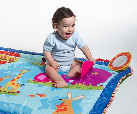 Коврик очень яркий, удобный для игр, малыш долгое время может находиться на нем. Не пожалели,что приобрели!