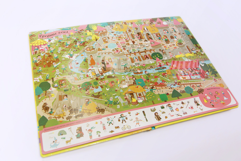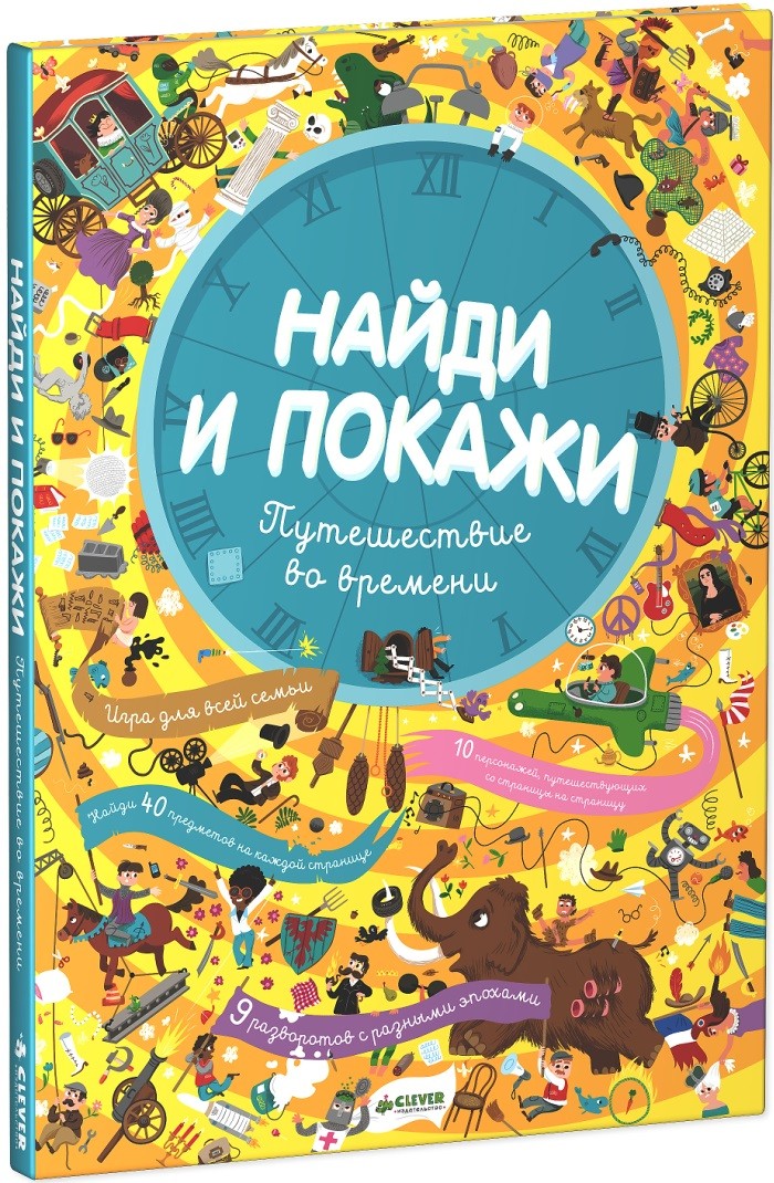 Уникальное красочное издание – книжка-картинка «Найди и покажи. Путешествие во времени» наверняка понравится каждому ребенку. Ведь это красочная книга с миллионом картинок и занимательными заданиями. Вместе с ребенком по книге путешествуют 10 персонажей, а еще на каждом развороте книги, иллюстрирующем ту или иную эпоху ребенку предлагается найти 40 персонажей. Книга адресована детям в возрасте от 3 до 7 лет и послужит прекрасным развивающим пособием, ведь именно в игре дети развивают основные для этого периода навыки – внимательность, воображение и память.