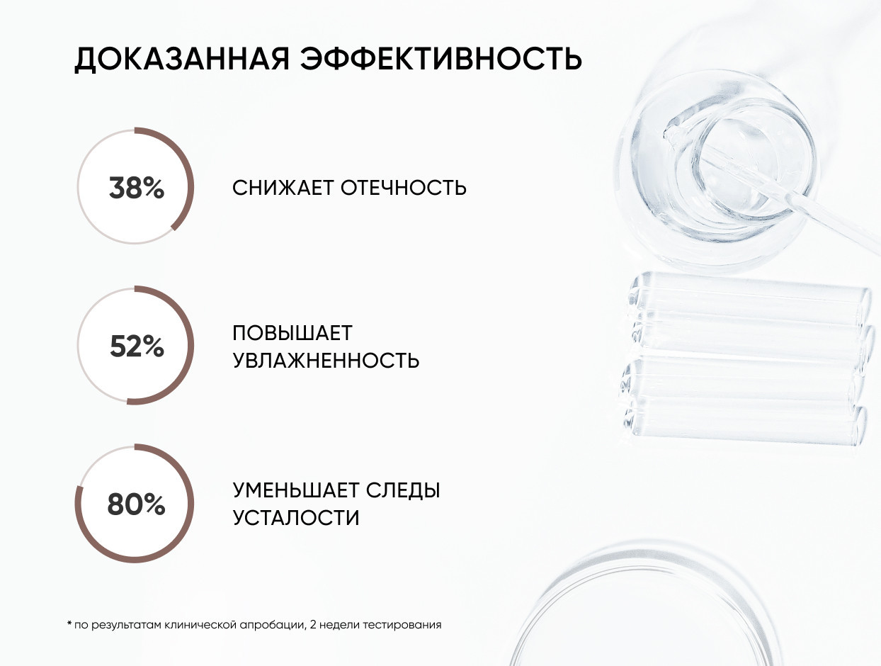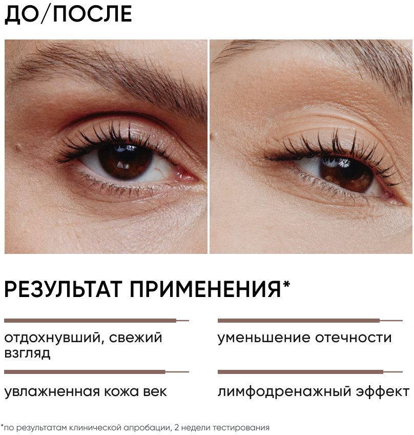 • придает коже вокруг глаз здоровый и свежий вид, убирает следы усталости;