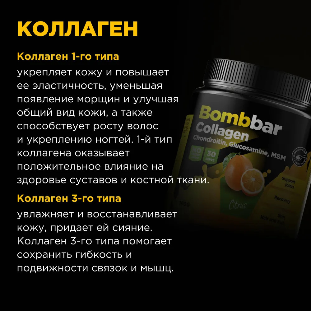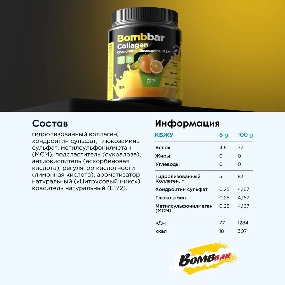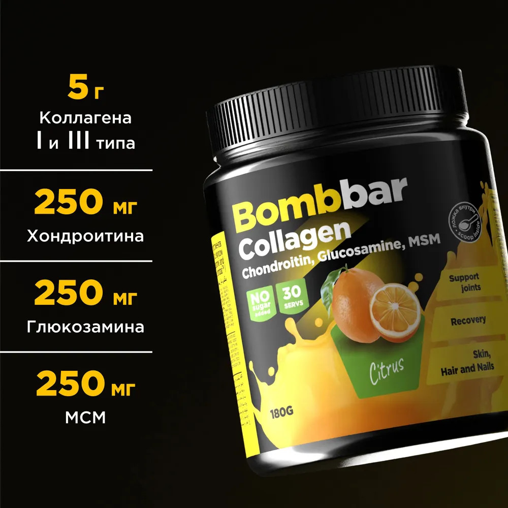 Bombbar Коктейль со вкусом цитруса «Collagen + Chondroitin, Glucosamine, MSM»