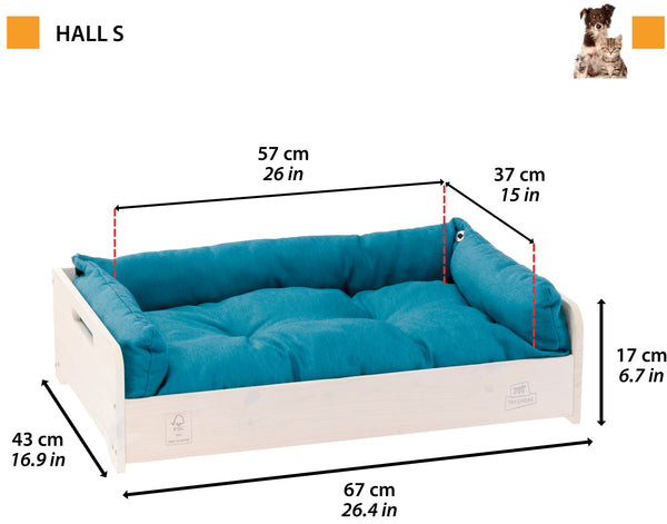 Hall — это элегантная деревянная лежанка для кошек и собак, сочетающая в себе изысканный дизайн и высочайший комфорт. Лежанка оснащена мягкой подушкой, обеспечивающей исключительный комфорт, что делает ее идеальным местом для отдыха вашего питомца. Подушка подлежит машинной стирке при температуре 30°, что позволяет всегда поддерживать чистоту и гигиену спального места.